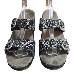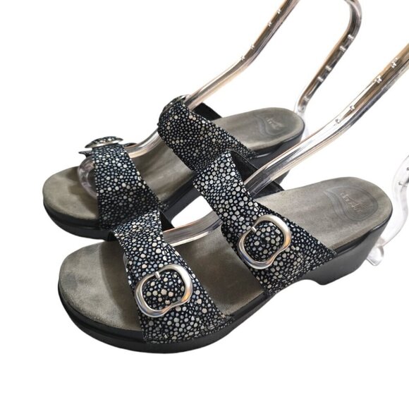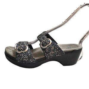 Dansko Sophie Black Shagreen Open Toe Wedge Sandals Sz 8M