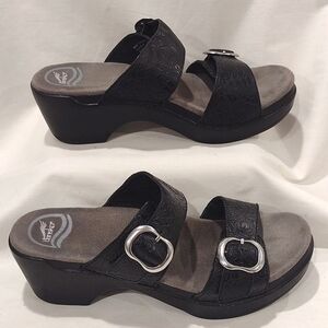 Dansko Sophie Buckle Leather Platform Slides Embossed Leather EU 37 NWOB