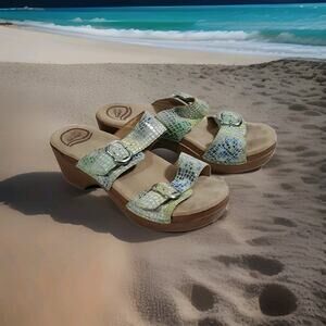 Dansko Sophie Irlidescent Reptile Print Slip On Mules Sandals 37/US 6.5 Beachy