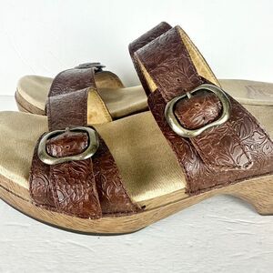 Dansko Sophie Tooled Leather Sandal Clog Size 41 US 10.5-11 Brown Buckle Comfort
