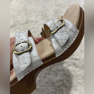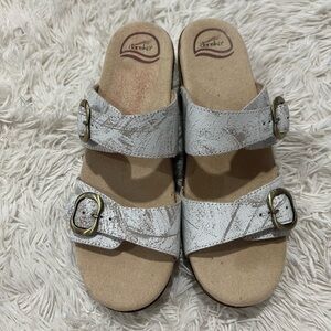 Dansko Sophie Two Straps Sandals - Size 41 US 10.5-11 - white distressed leather straps - adjustable straps - like new - on the right pair has a faded red lines, what does not affect the shoe function