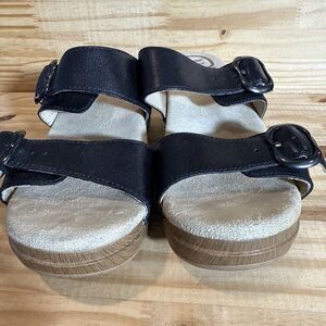 Dansko Sophie Women's Black Leather Block Heel Sandals Size 37 EUR / 6 US