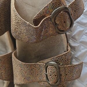 Step out in style with these glittery sandals. Perfect for any occasion, they offer both comfort and elegance.