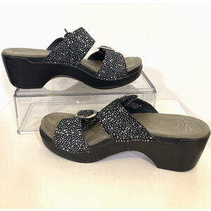 Dansko Sophie Womens Size EU 37 US 6.5-7 Black Metallic Strap Buckle Sandals