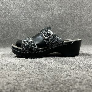 Dansko Sophie Womens Sz 40 Black Metallic Leather 2-Buckle Slide Wedge Sandals