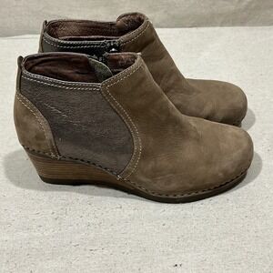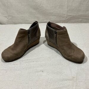 Dansko Susan Women's Brown Leather Wedge Ankle Boots Side Zip Size EU 37 USA 6.5