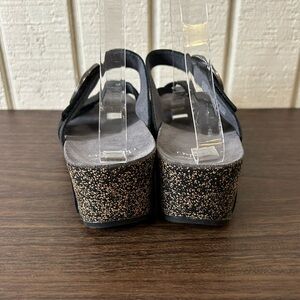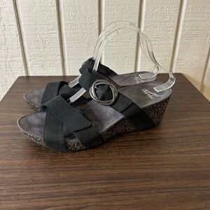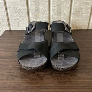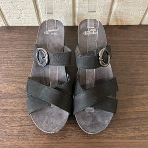 Dansko Susie Milled Black Nubuck Slide On Wedge Sandal, size 41.