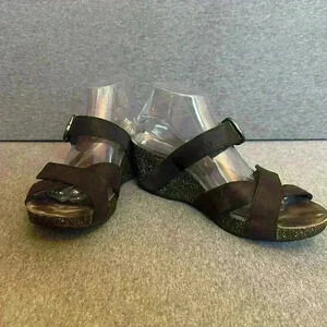 Dansko Susie Platform 2” Wedge Black Adjustable Leather Wedge Women 10 or 41 EU