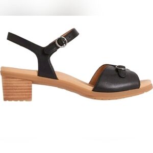 Dansko TESSIE BLACK wood Stack Heel NEW 39 Sandals SHOES BUCKLE Leather Shoes 9