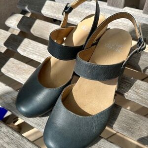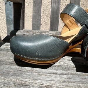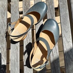 Dansko Taci Mary Jane clogs in denim blue leather, size 38. The perfect color for jeans! As a long-time Dansko fan, I had to have these, and bought them from Dansko, but as with nearly everything else listed in my Poshmark closet, they're not on a frequent enough wearing rotation to keep them. Too many shoes! So I thanked them and am now Marie Kondo-ing them. Now's your chance to pick up these clogs in Very Good Used condition—extremely lightly worn, maybe 4 times in total. 😢 Add them to your regular wearing rotation.