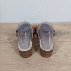 Dansko Tan Leather Buckle Strap Woven Block Heel Sandals 413