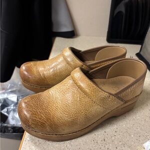 Experience all-day comfort with these Dansko mules. Crafted in tan leather. Ideal for casual outings.