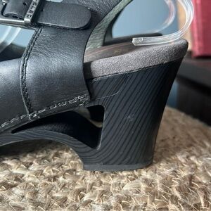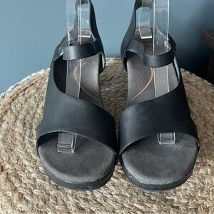 Dansko Full Grain Leather Upper with a Buckled Ankle Strap. Pillow Soft Footbed with Full Foot Support. 2 3/4” Cutout Beveled Heel and 1” Platform. Water Resistant. Size Chart in Photos Size 41 = US Size 10.5 -11. Small Scrape-on inside right heel see photos. GUC🚭