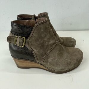 Dansko Taupe Shirley Wedge Suede Bootie Ankle Boots Size EU 39, US 9
