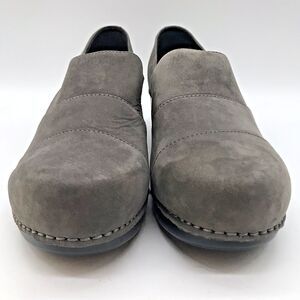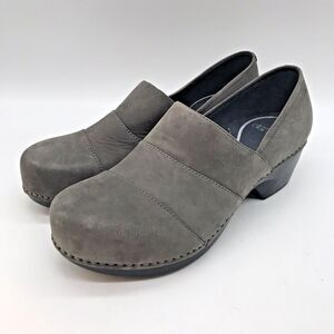 Dansko Tenley Gray Belted Slip-On Heels Women's 39 Nappa Leather Comfort Shoes