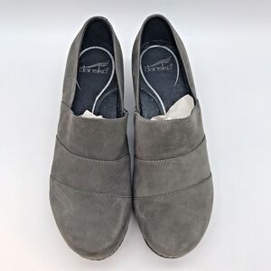 Dansko Tenley, Gray Belted, Slip-On Heels. Women's size EUR 39 or 8.5 US, Nappa Leather, Comfort Shoes with stretch Gussets. Never worn outside, just tried on once. NICE!