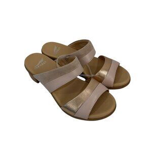 Dansko Theresa Womens Sandals Block Heel Metallic Nude Leather Suede Size 39