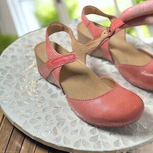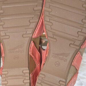 dansko,tiffani,coral,leather,wedge,mary jane,comfort,adjustable strap,heeled sandal,womens shoes,arch support,size 39,summer,travel,casual,work,walking