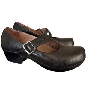 Dansko Tina Leather Black Mary Jane Wedge Clogs Size 41 / US 10.5-11