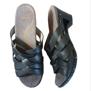 Dansko Torie Woven Leather Open Toed Clogs Cut Out Heel Sandals size 9