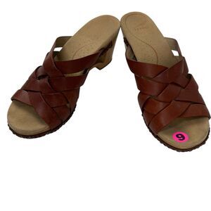 Dansko Tory Clog Sandal US 9.5/10 EU 40 Brown Slip On Heel Shoes Leather Cut Out