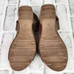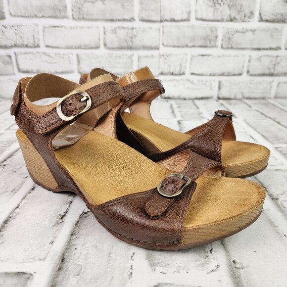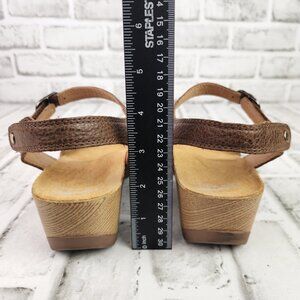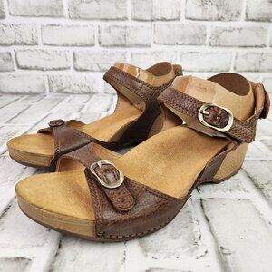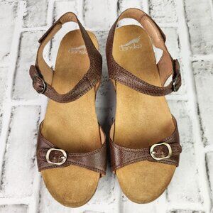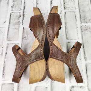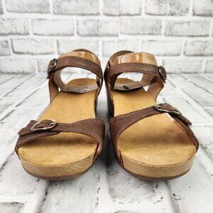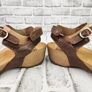 Dansko Tricia Women US 9 EU 39 Brown Leather Ankle Strap Wood Heel Wedge Sandals