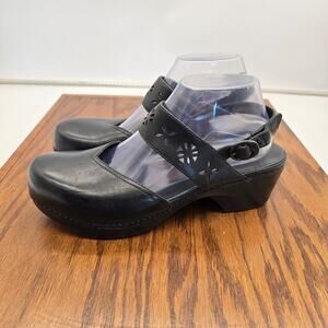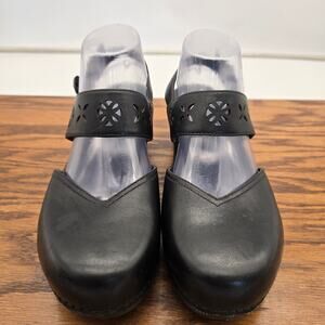 Dansko Trista Mary Jane Leather Slingback Clogs EU40 US9 Black Boho Peasant Work