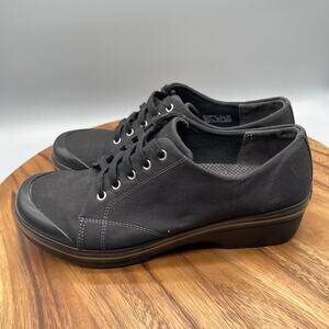 Dansko Veda Vegan Shoes Womens Size 11.5 / 42 Black Canvas Comfort Lace Up Clogs