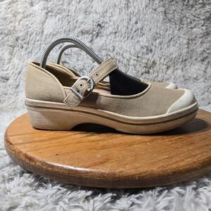 Dansko Vegan Valerie Mary Jane Women 9.5-10 EU 40 Shoe Beige Canvas Buckle Clogs