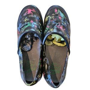 Dansko Vegan Volley Comfort Clogs Printed Frogs Black Size 39 US 8.5 9 Shoes