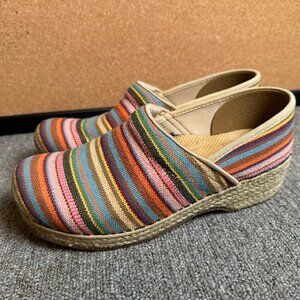 Dansko Vegan Woven Striped Colorful Comfort Espadrille Style Clogs EU 39 US 8.5