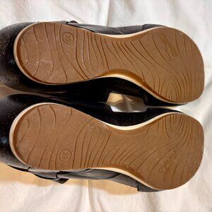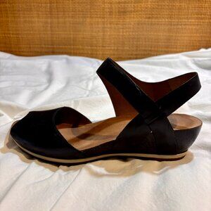 Super cute, dressy, comfortable sandals. Ancle adjustment is velcro and the footbeds are plush and comfy. These are open-toed sandals.