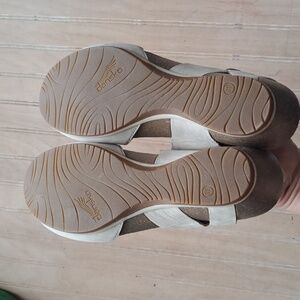 Dansko Vera Wedge Sandals in a soft nude tan leather, size 39 (approx US 8.5–9).