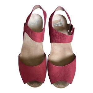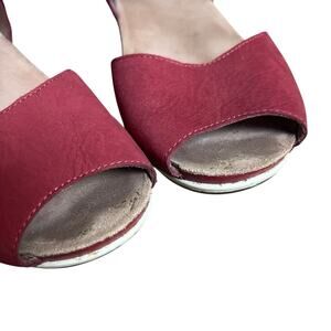 Dansko Vera Red Nubuck Leather Peep Toe Wedge Sandals 38 7.5-8 Comfort