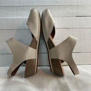 Dansko Vera Wedge Sandal 40 Oyster Cream Nubuck Leather Peep Toe