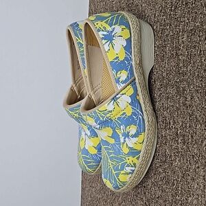 Dansko Victoria Tahiti Blue Yellow Floral Clogs