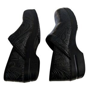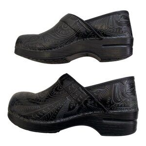 Crafted for all-day wear, these Dansko clogs combine style with function. The intricate tooled leather design adds sophistication, while the arch support ensures lasting comfort.