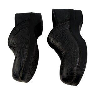 Dansko Womens 10 Clogs Cabrio Tool Black Leather Slip Resistant Nurse Paisley