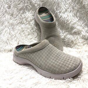 Dansko Womens 37 Perforated Slip-On Clogs Gray Suede Upper Slip-Resistant Sole