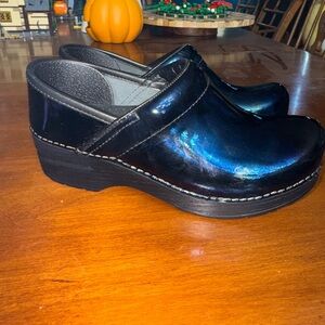 Dansko Professional Petrol Patent Leather Clogs Nurse Shoes Sz 36 (5.5). In Gently used, retails for $145.