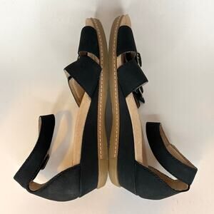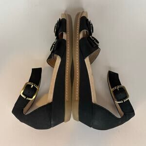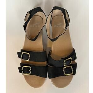 Dansko Women’s 7 / 37 Astrid Comfort Sandal Low Wedge Black Leather Strappy