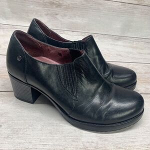 Dansko Womens Adrienne Ankle Bootie Size 40 Black Leather Block Heel Round Toe