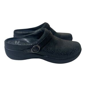 Dansko Women’s Allison Embossed Black Leather Slip On Mules