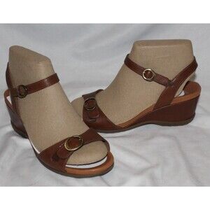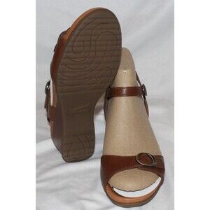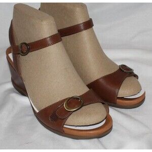 Dansko Womens Arielle Wedge Glazed kid Leather Sandals TAN