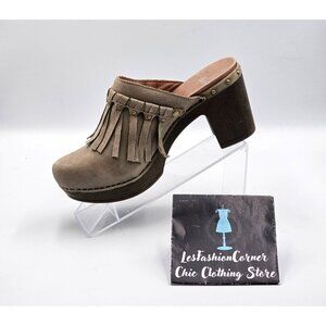 Dansko Women's Beige Suede Leather Deni Fringe Mules Clogs Size 6.5 (37) 2976