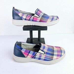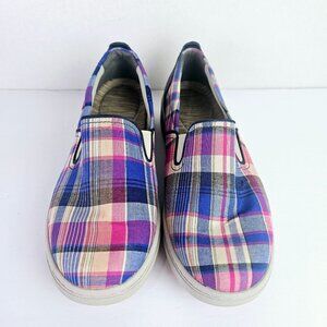 Dansko Women's Belle Slip On Blue Madras Plaid Arch Support Flats, 40