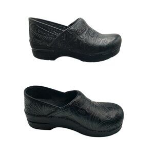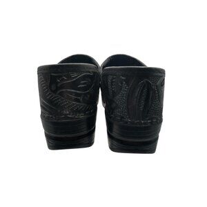 Dansko Womens Black Engraved Leather Clogs Size 36