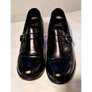 Dansko Womens Black Leather Heeled Loafers With Buckle Strap Size 39