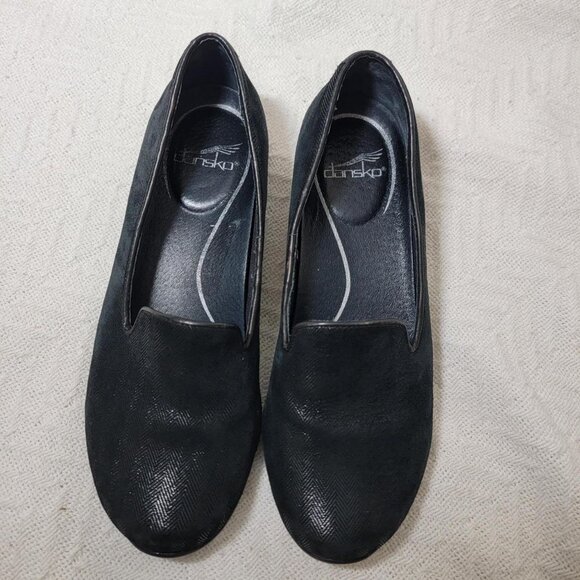 Dansko Olivia Herringbone Pattern Black Leather Loafers Slip On Comfort size eu 38 us 7.5-8