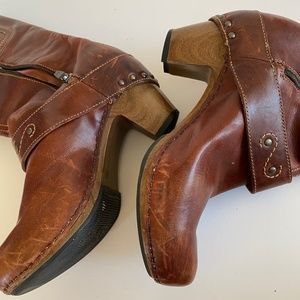Dansko Womens Brown Rylan Crazy 1314787800 Leather Western Boots UK 38 (US Size 7.5-8) **boots will stretch/form to feet over time from wear PreLoved, Broken In ( see photos ) Dansko Rylan CHESTNUT BROWN (reddish) Leather Studded Harness with Zip Tall Boots Inside Zip Elasticized Goring Stud Detail and Buckle on a Dropped Harness Out of Production Will Be Conditioned Again Before Shipment